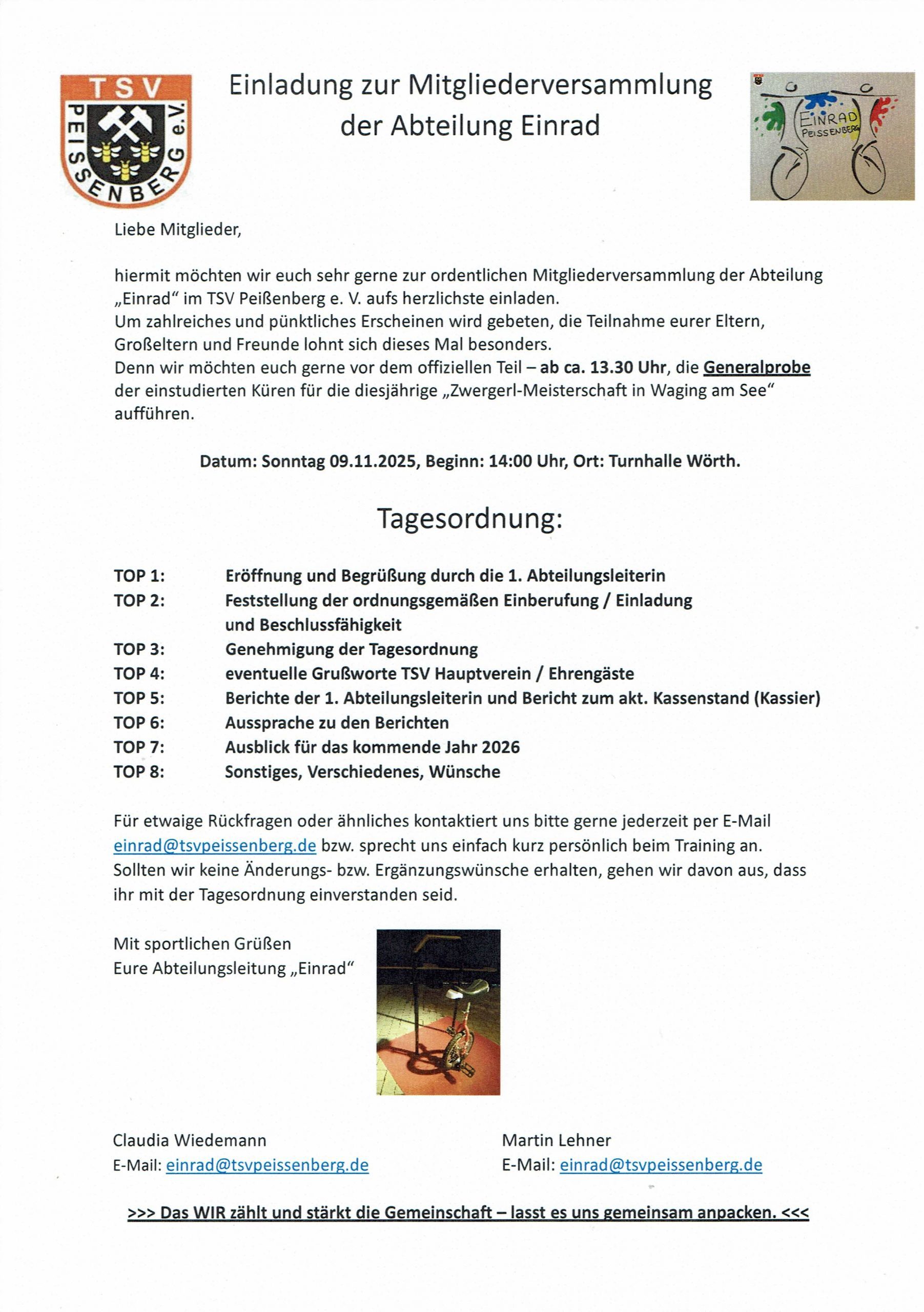 01.10.2025, TSV Hauptverein, Neuwahl der Jugendleitung Am 01.10.2025 fand die Jugendleitersitzung des TSV Hauptvereins statt. Nach den Berichten der Abteilungen und der Vereinsjugendleitung standen die Neuwahlen auf dem Programm. Maximilian & Sabine bedanken sich herzlich für das […]