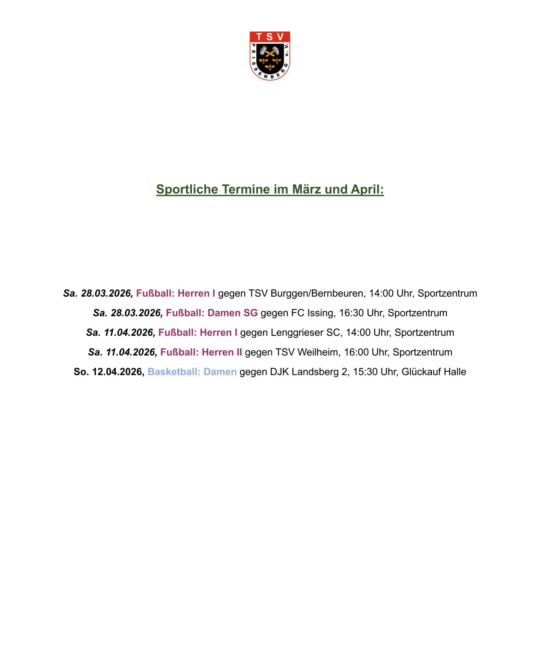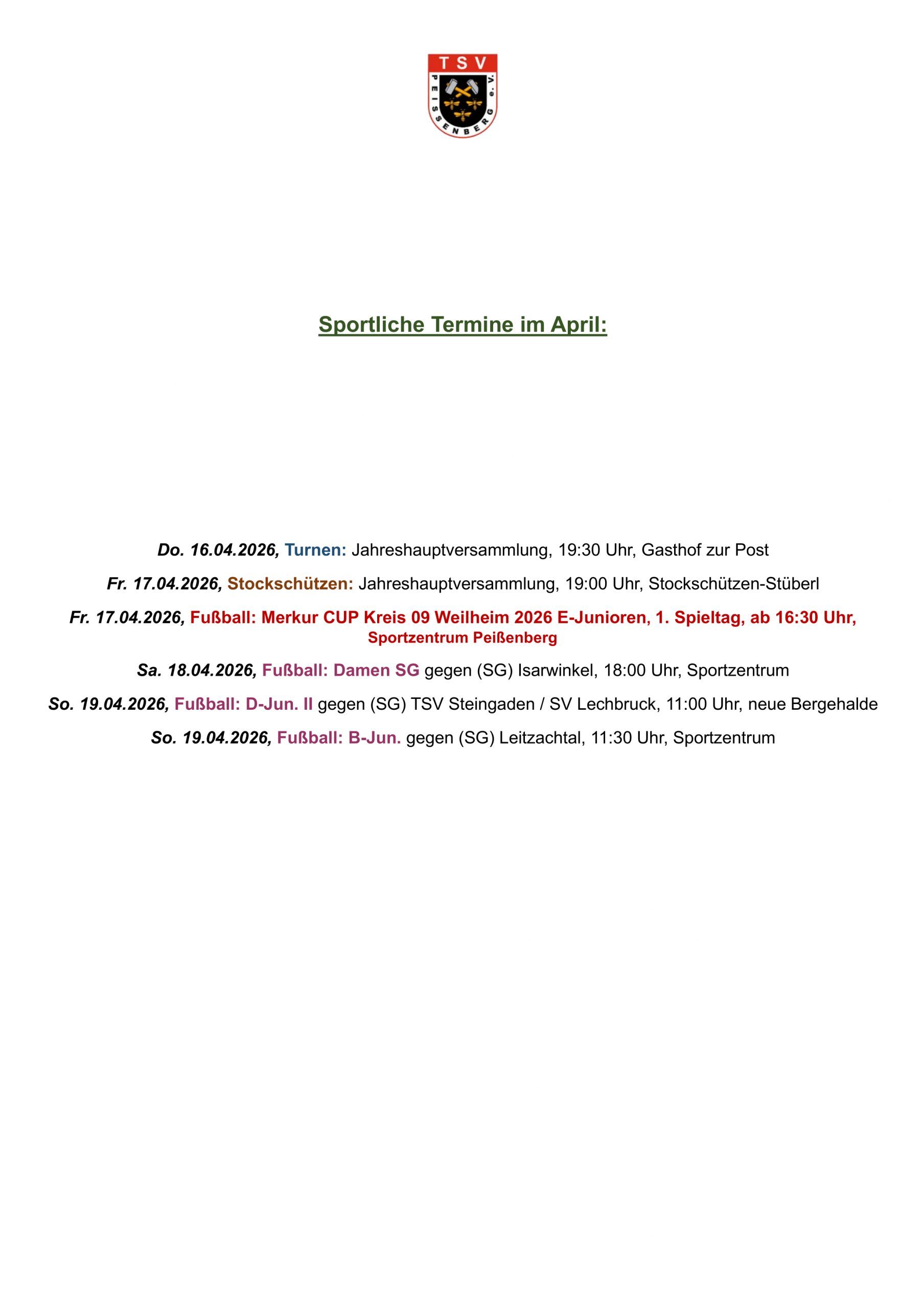 Die kommenden sportlichen Termine: