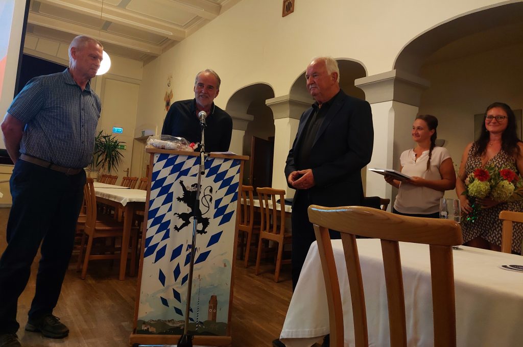 Foto von links: Rudi Fischer (TSV Ehrenmitglied), Stefan Rießenberger (TSV Präsident), Peter Eckert sen. (TSV Ehrenmitglied)