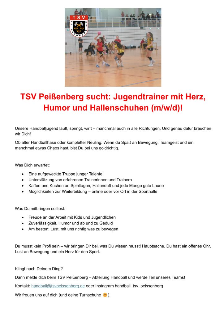 27.03.2026, Abteilung Handball, wir suchen einen Jugendtrainer mit Herz, Humor und Hallenschuhen (m/w/d)